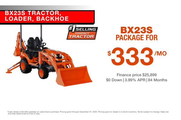 Kubota BX2380TV60-1 tractor, 60" mower, LA344S loader