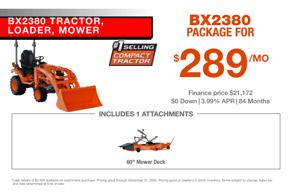 Cash rebate of $2,500 available on cash/check purchase. Pricing good through December 31, 2025. Pricing good on dealer's in stock inventory. Terms subject to change. Sales tax and fees determined at time of sale.